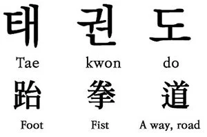 Let's take a closer look at the meaning of the word "Tae" "Kwon" "Do." It is composed of three parts as shown in the English spelling, though it is one word in Korean. "Tae" means "foot," "leg," or "to step on"; "Kwon" means "fist," or "fight"; and "Do" means the "way" or "discipline." If we put these three parts together, we can see two important concepts behind "Tae Kwon Do".